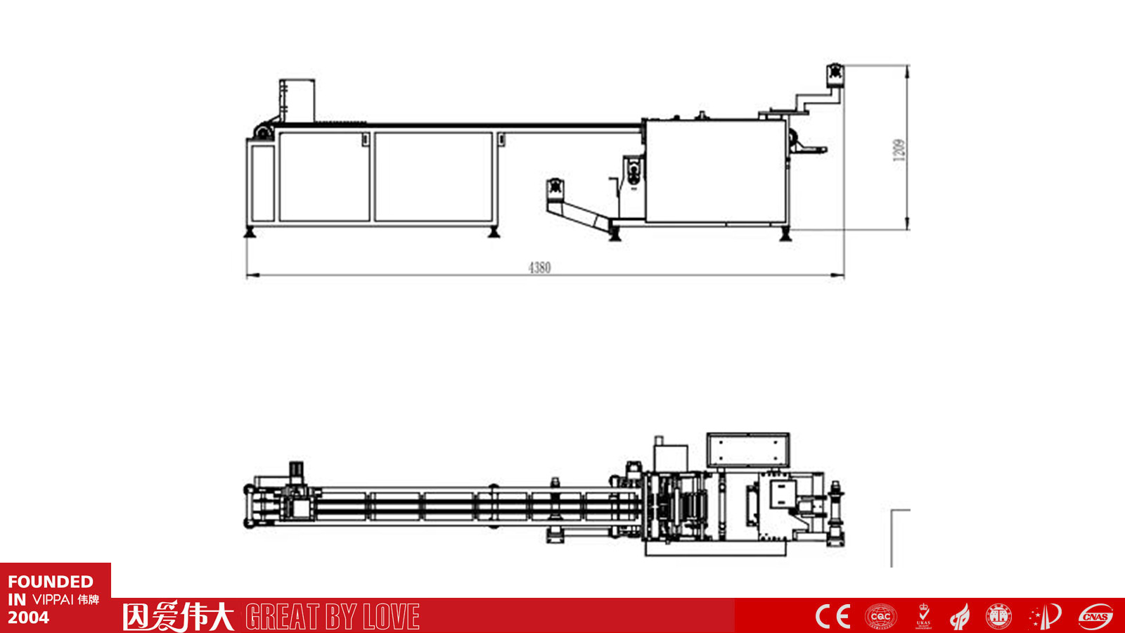 VPD全自动鼻咽拭子包装机 1.拭子棉头直径4.2mm以上的上料方式如下:料箱自动上料,1人从纸盒放料到料仓,1人在链条上补充漏掉的工位,速度在每分钟220-280支左右(视工人放签的快慢)。导配备拭子自动计数,包装操作输送带